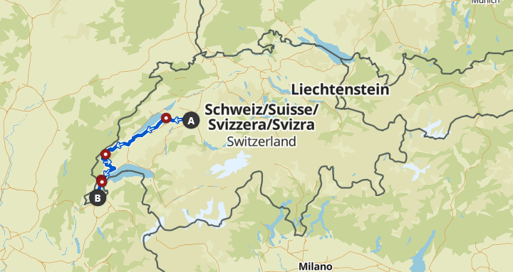 Wir starten in Bern und fahren Richtung Westen zum Murtensee, folgen seiner Uferlinie und umrunden ihn auf aussichtsreicher Route. Weiter geht’s entlang des Neuenburgersees bis ins charmante Yverdon-les-Bains.